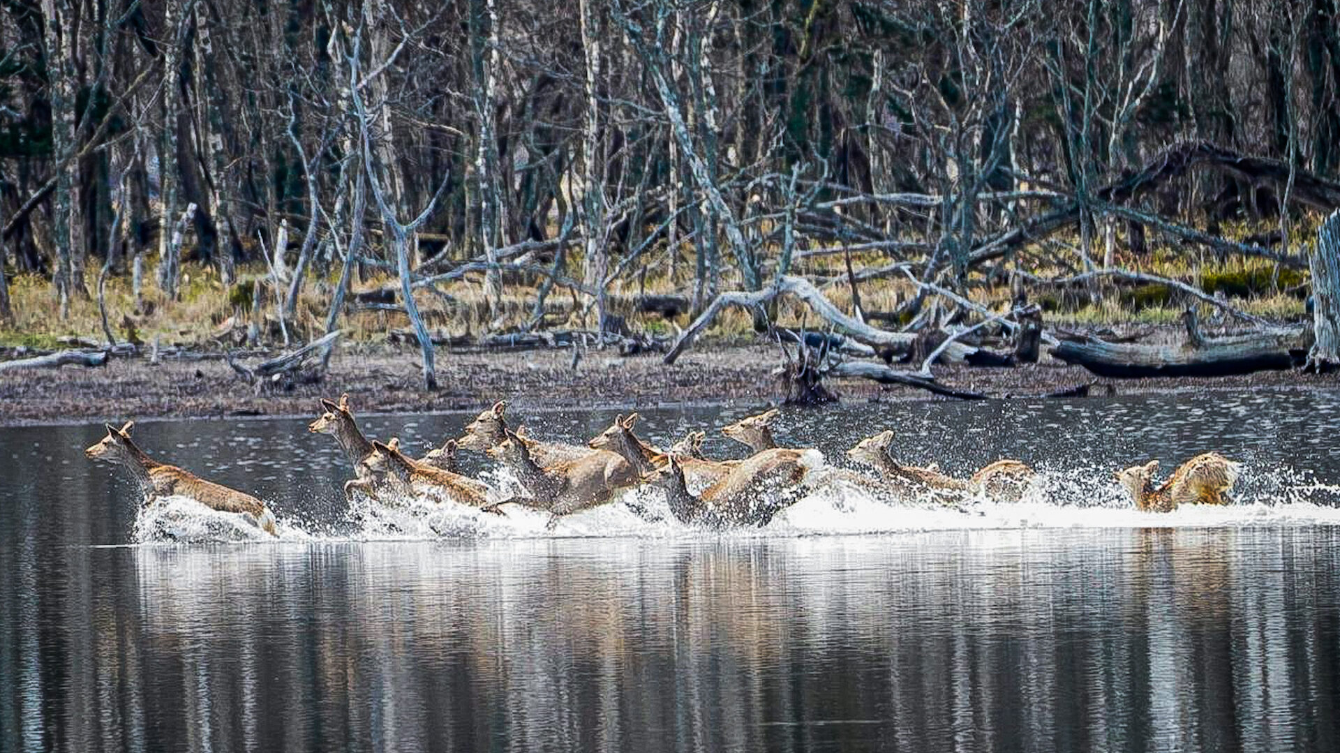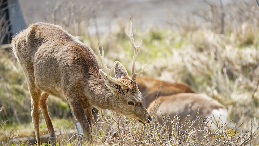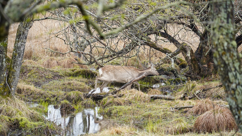 湿原を渡るたくましいエゾシカやかわいい表情も撮影できたね