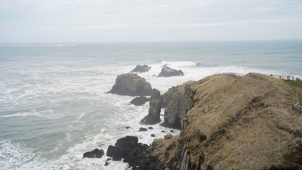 厚岸町を抜け、海岸線を通って浜中町をめざします。その途中に「涙岬展望台」と「立岩展望台」があり、絶景を眺めることができます。