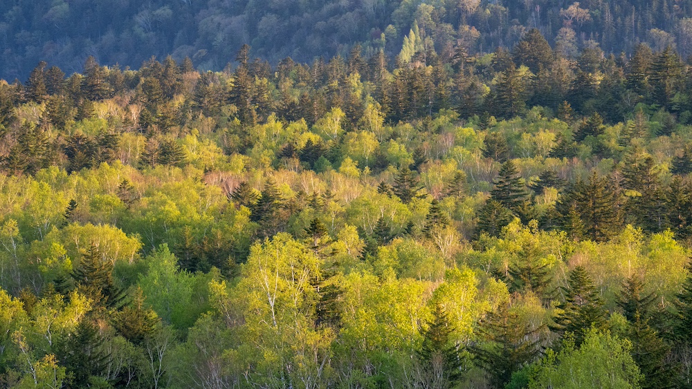そして目の前には予測通り雲海が広がっていました。朝陽に照らされる新緑のシラカバなどもきれいでしたね。