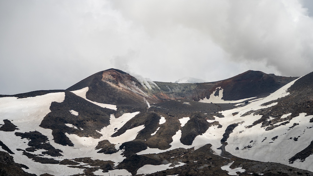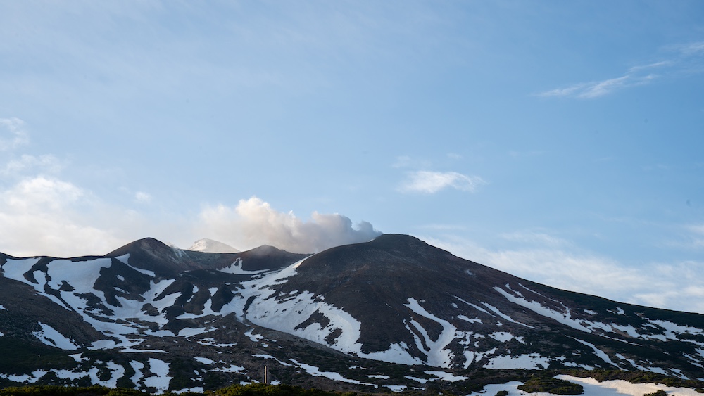 5月下旬でも山頂付近はまだまだ残雪が残っています。火口付近から立ち上る噴煙も迫力があります。一度山頂には登っているので今回は撮影を中心に望岳台周辺を散策します。
