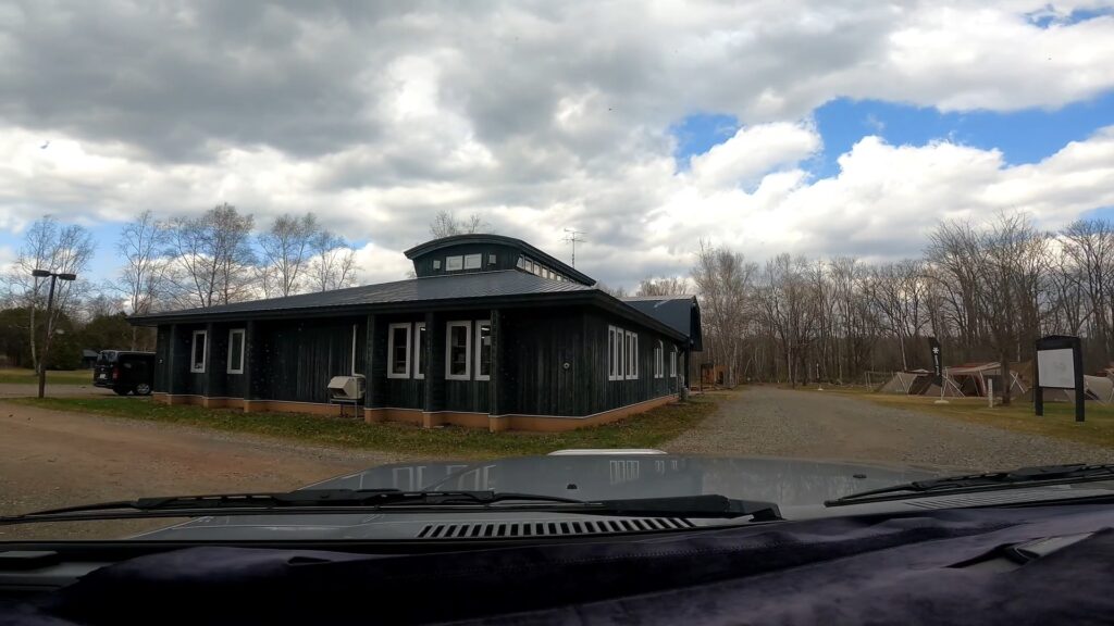 まずは管理棟で受付を済ませます。13時チェックインにピッタリと行けました。事前に手続きだけ済ませることもできます。