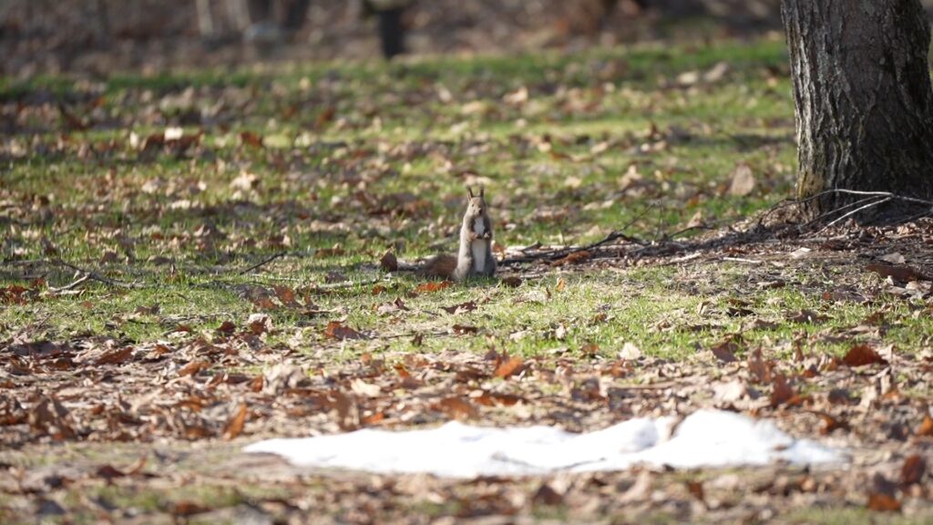 キャンプサイト周辺には「アカゲラ」の姿や、場内を走り回る「エゾリス」もいました。鳥の鳴き声とともに、目覚めて、早朝に活発に動き回る動物たちを探してみるのもいいでしょう。